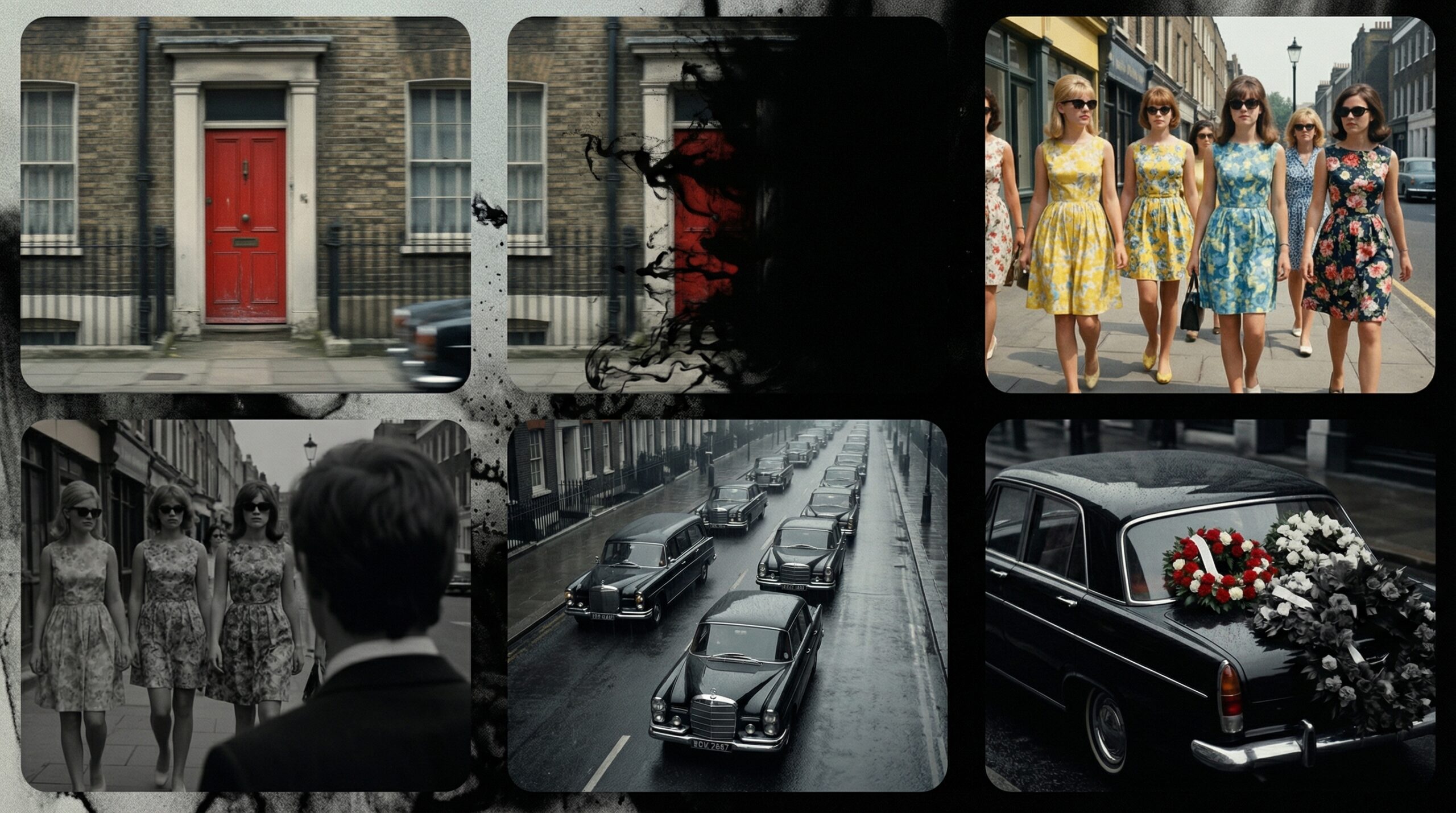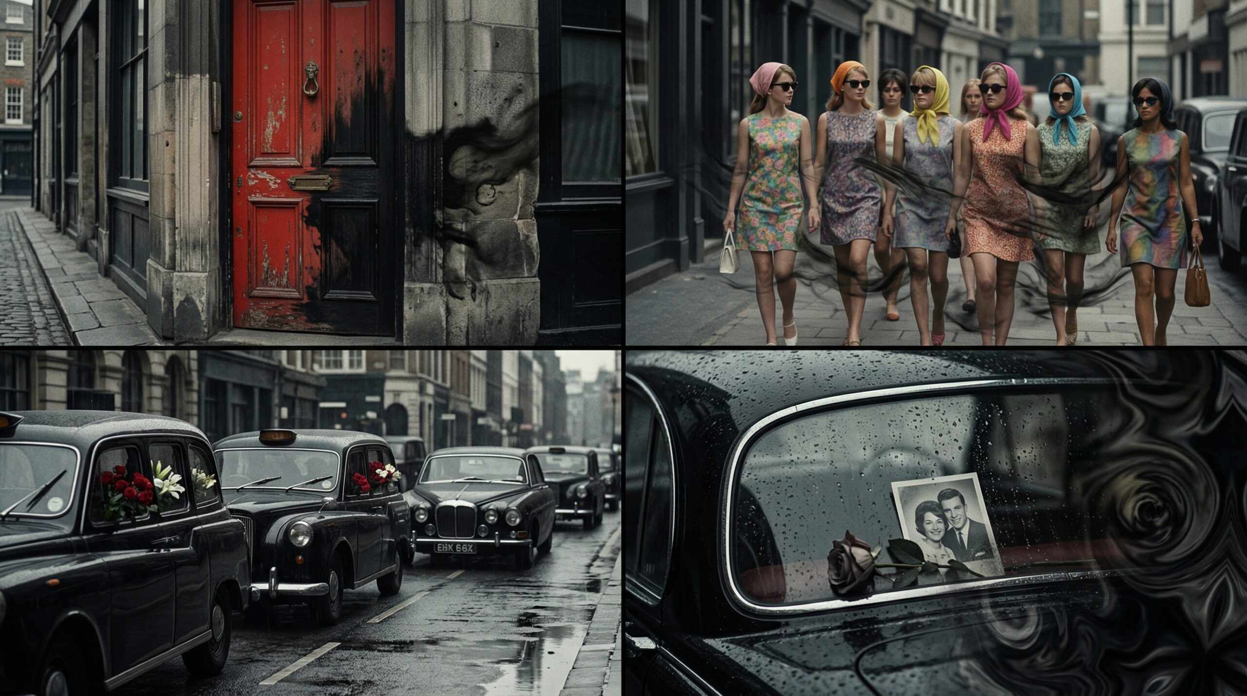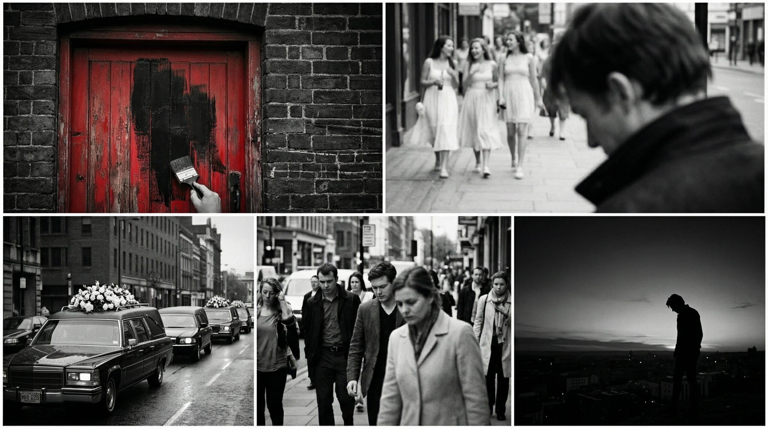 References to death and mourning within the lyrics may materialize as visuals featuring traditional symbols—such as funeral processions, shadows, or empty urban spaces—blended with surreal and illogical elements. This creates a tension between the familiar and the unknown, reflecting both the atmosphere of the original song and the aesthetic tendencies of AI-generated imagery.
